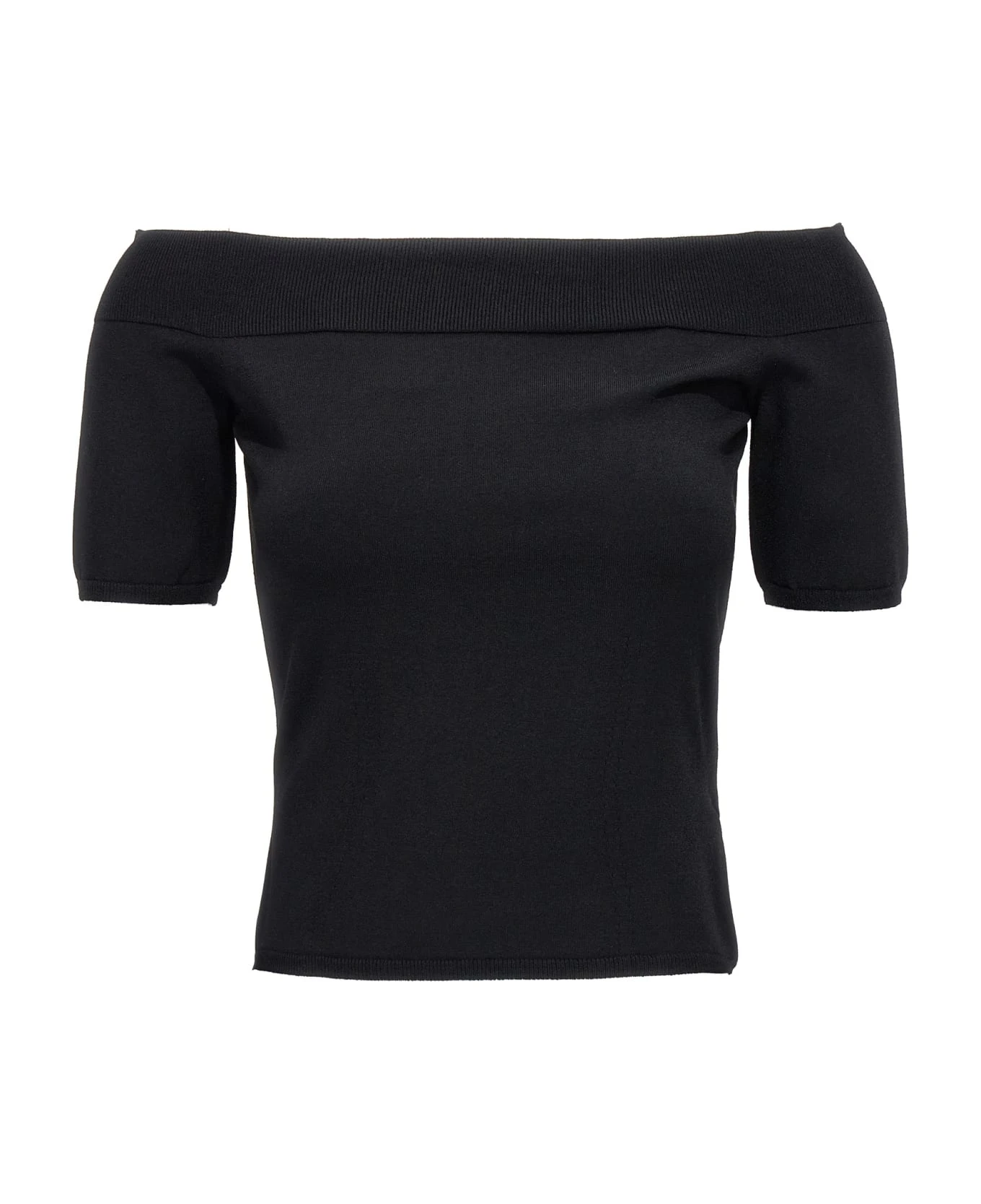 Off-the-shoulder top in a viscose blend with short sleeves and a squared neckline.