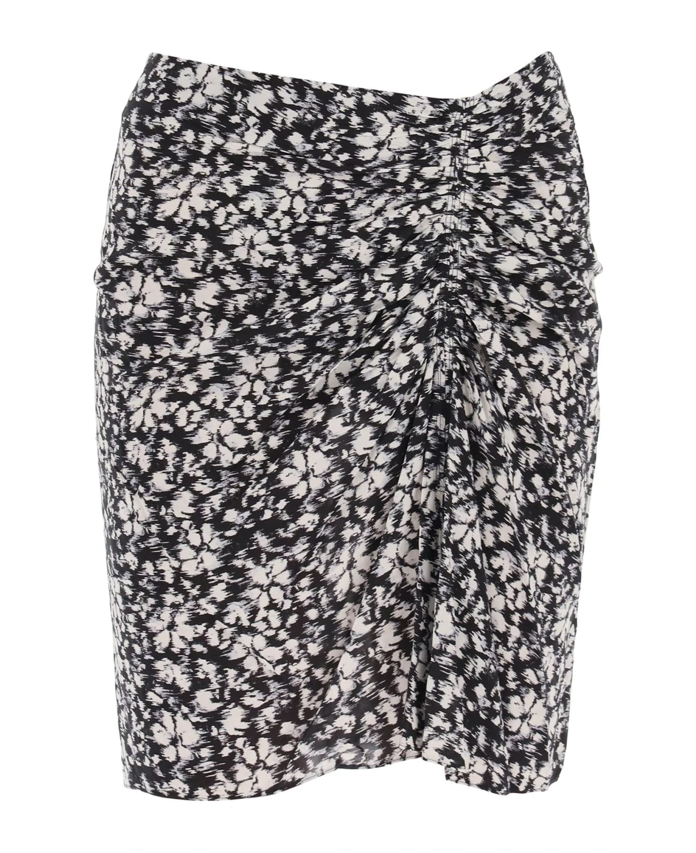 Marant Etoile mini skirt featuring a straight cut with front ruching. Made of lightweight viscose, it is enhanced by an all-over blurred floral pattern. Unlined and closed at back with an invisible zipper. The model is 177 cm tall and wears a size FR 36.