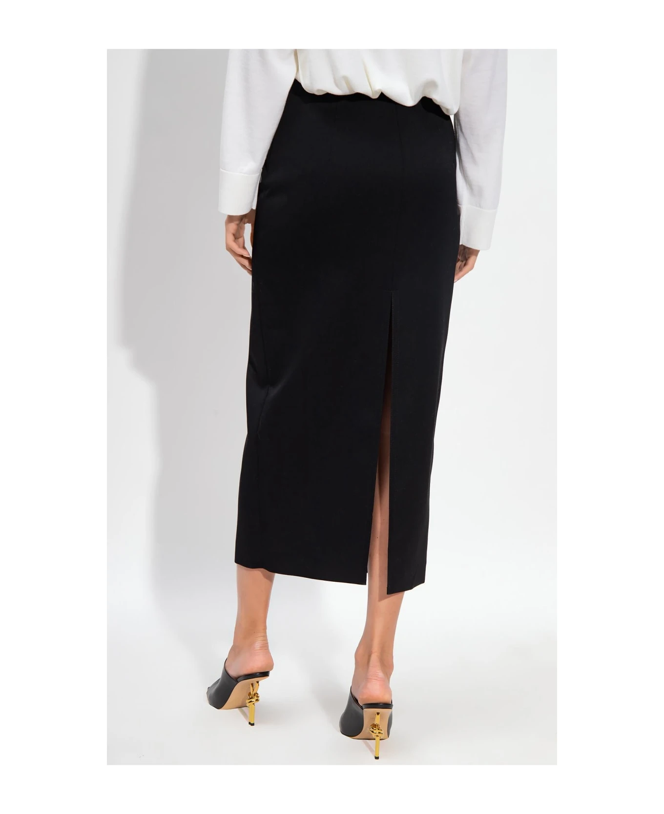 Black Skirt From Bottega Veneta. Made Of Wool, This Style Fastens With A Side Zipper And Features Frontal And Back Slits.