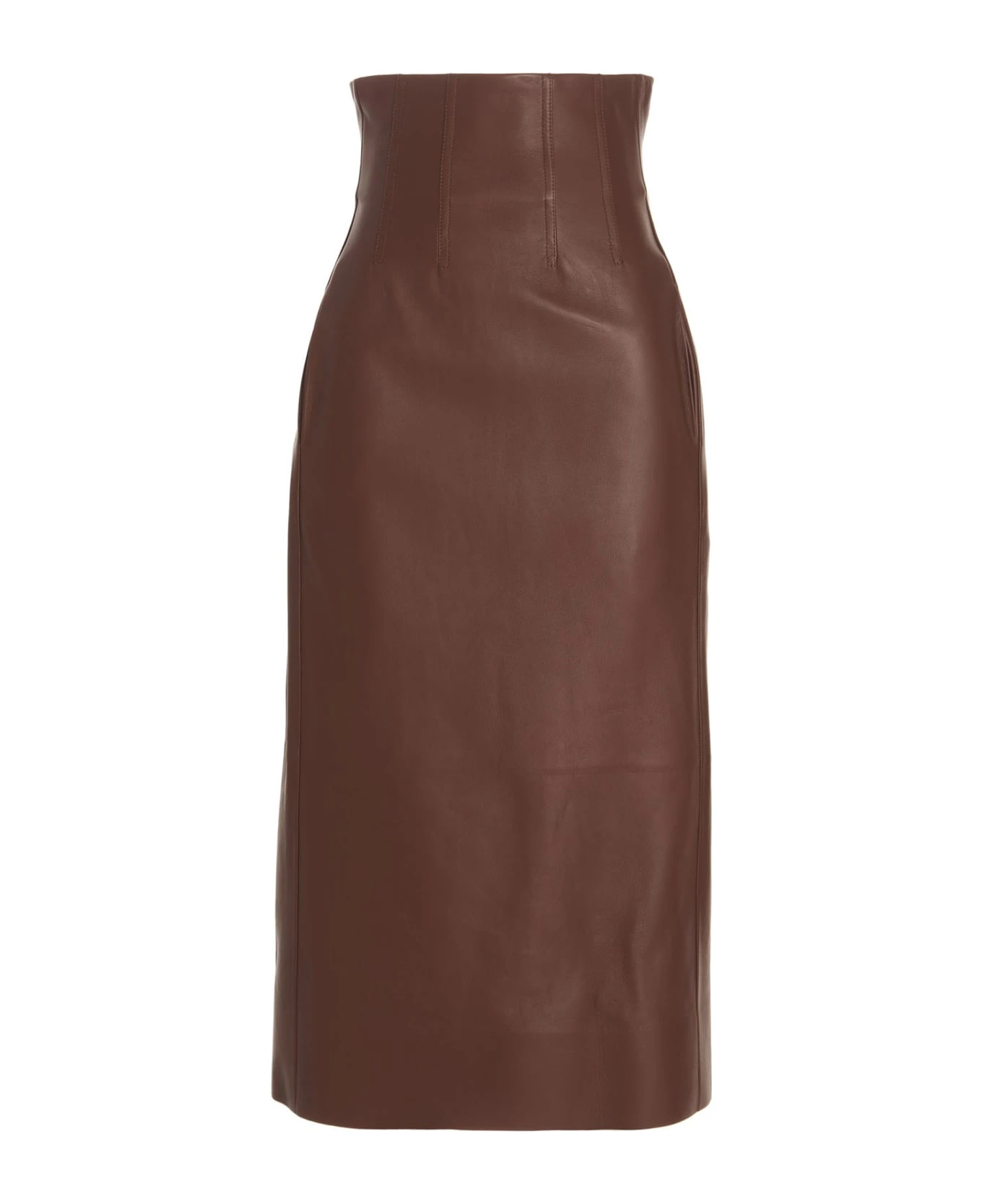 Loungette leather skirt with a back zip closure, a back split and lining.