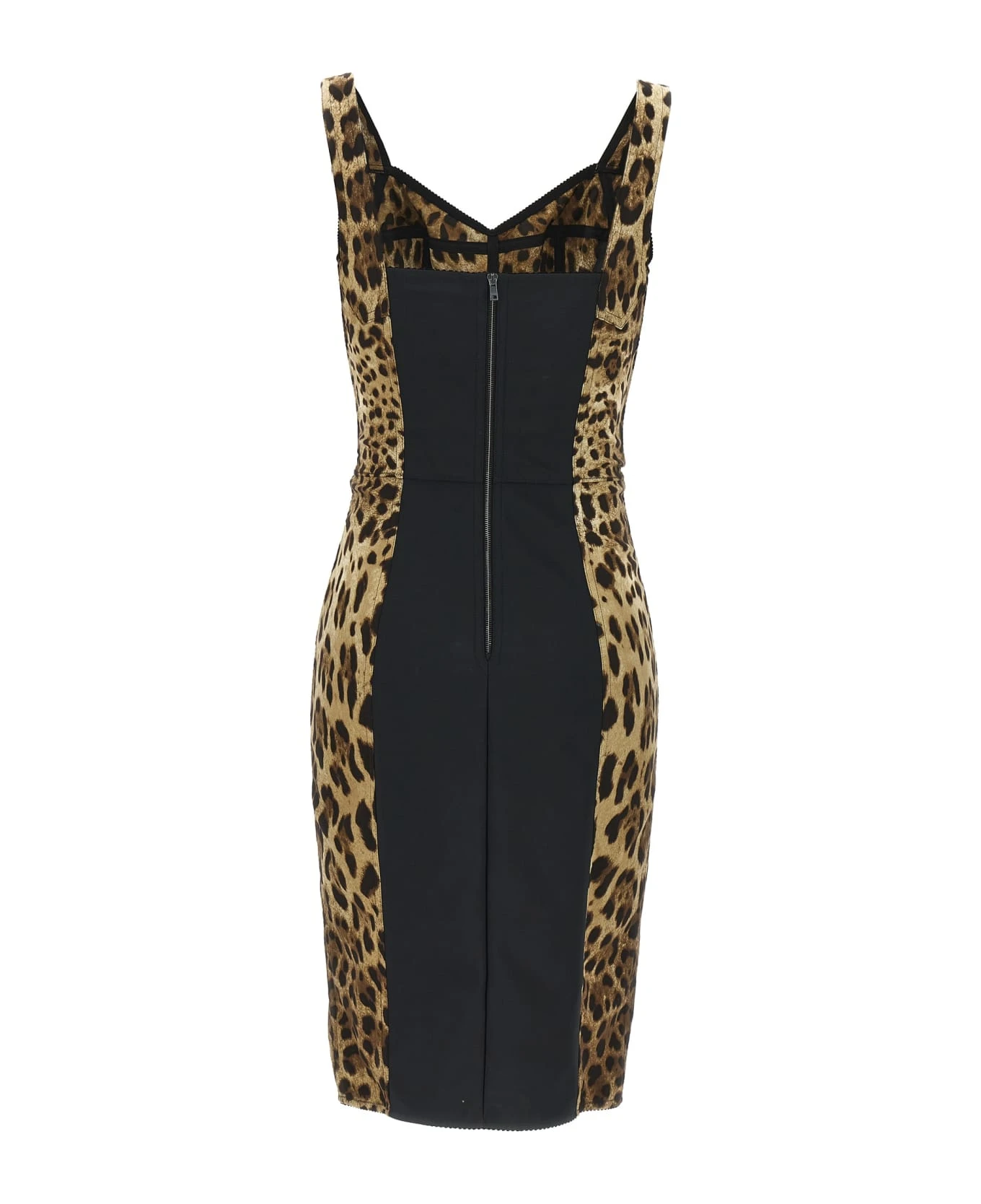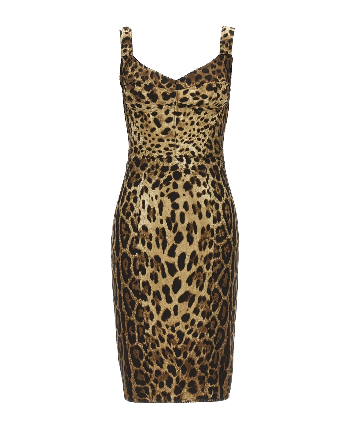 ‘Leopardo’ print silk blend bustier dress with sweetheart neckline, back zip closure.