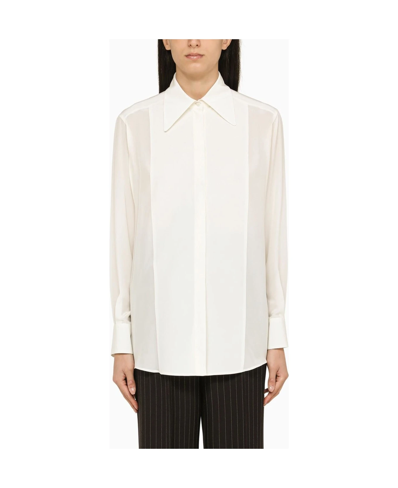 White silk shirt by Dolce & Gabbana featuring a concealed button placket and long sleeves.