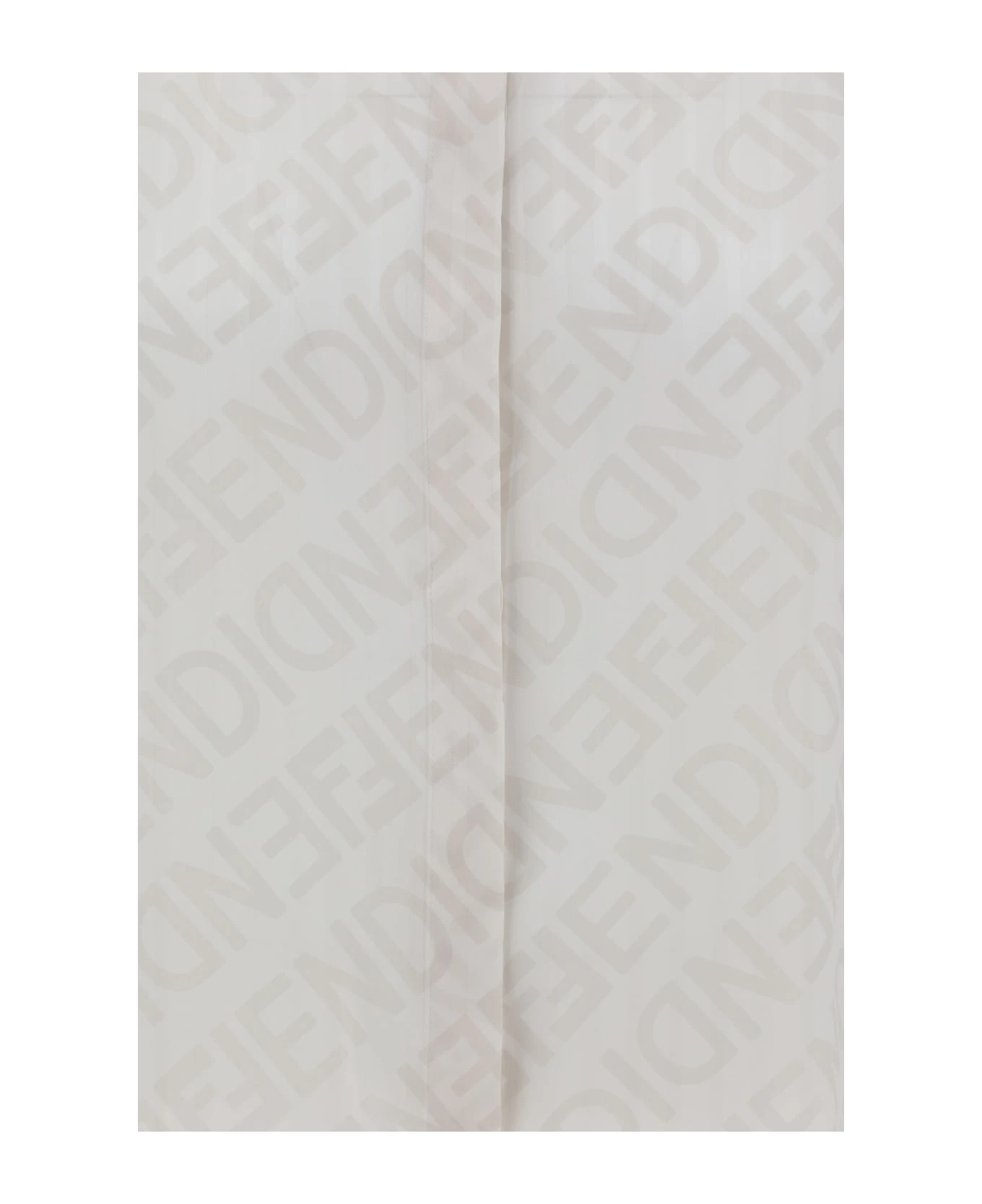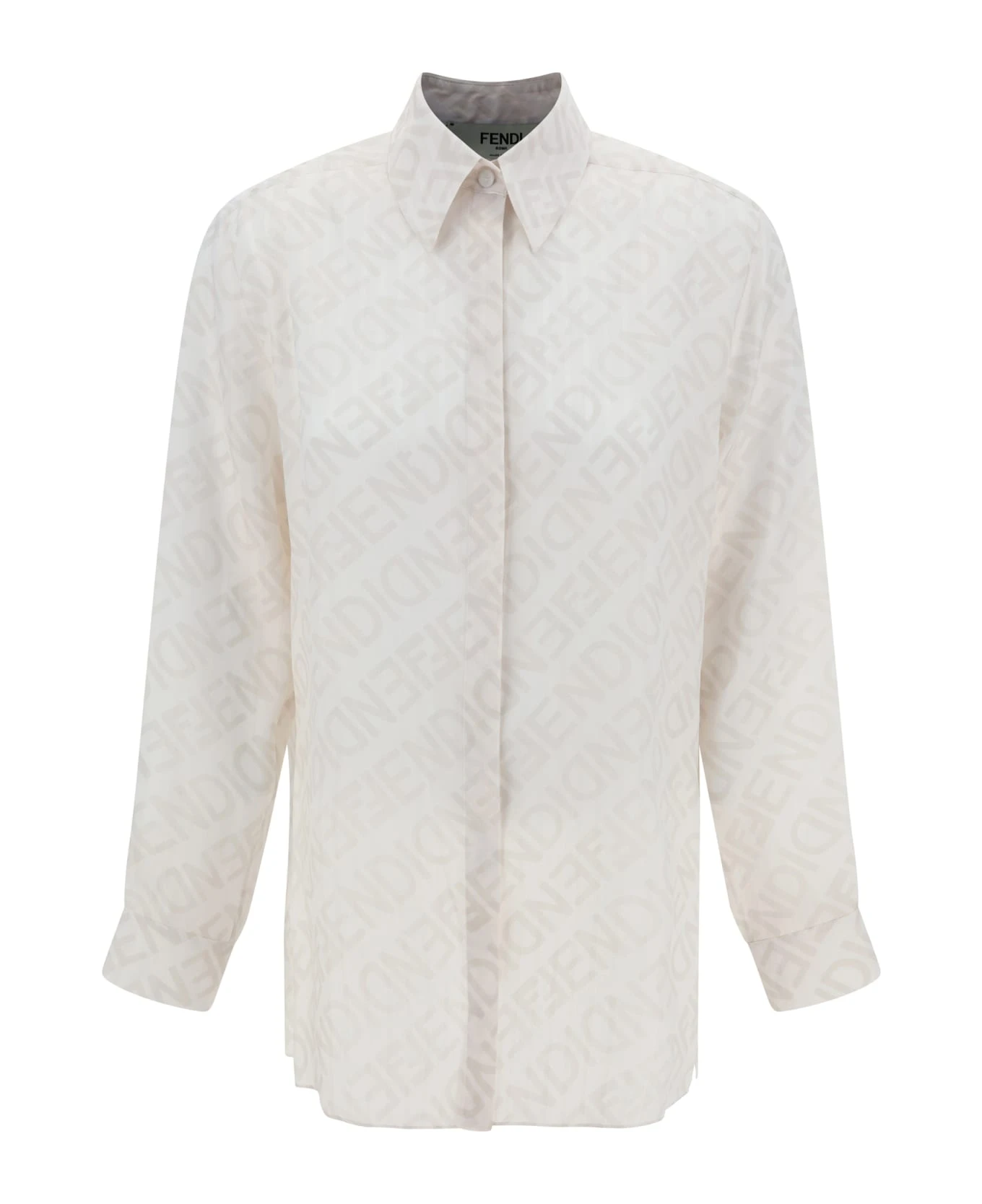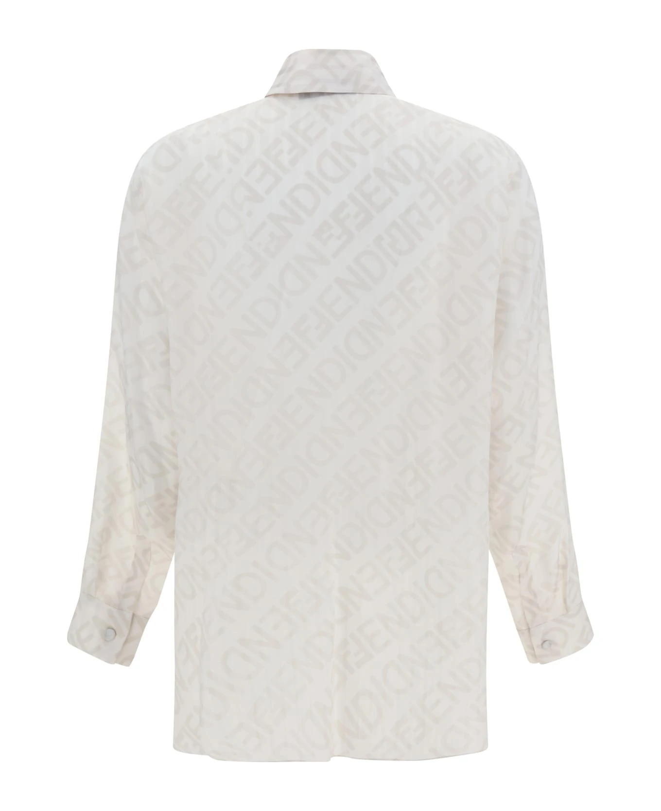 Silk mirror shirt by fendi, classic collar, a concealed front button closure, a pattern with iconic brand monogram repeated in contrasting colors, a semi-transparent fabric, adjustable button cuffs, and a regular fit.
