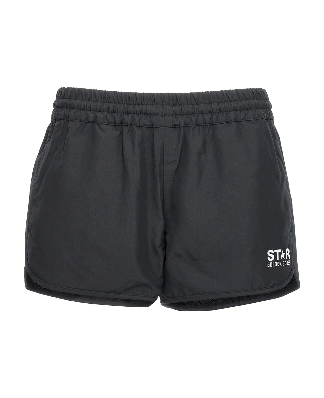 Diana’ shorts in tech fabric with logo print, an elastic and drawstring at the waist and pockets.