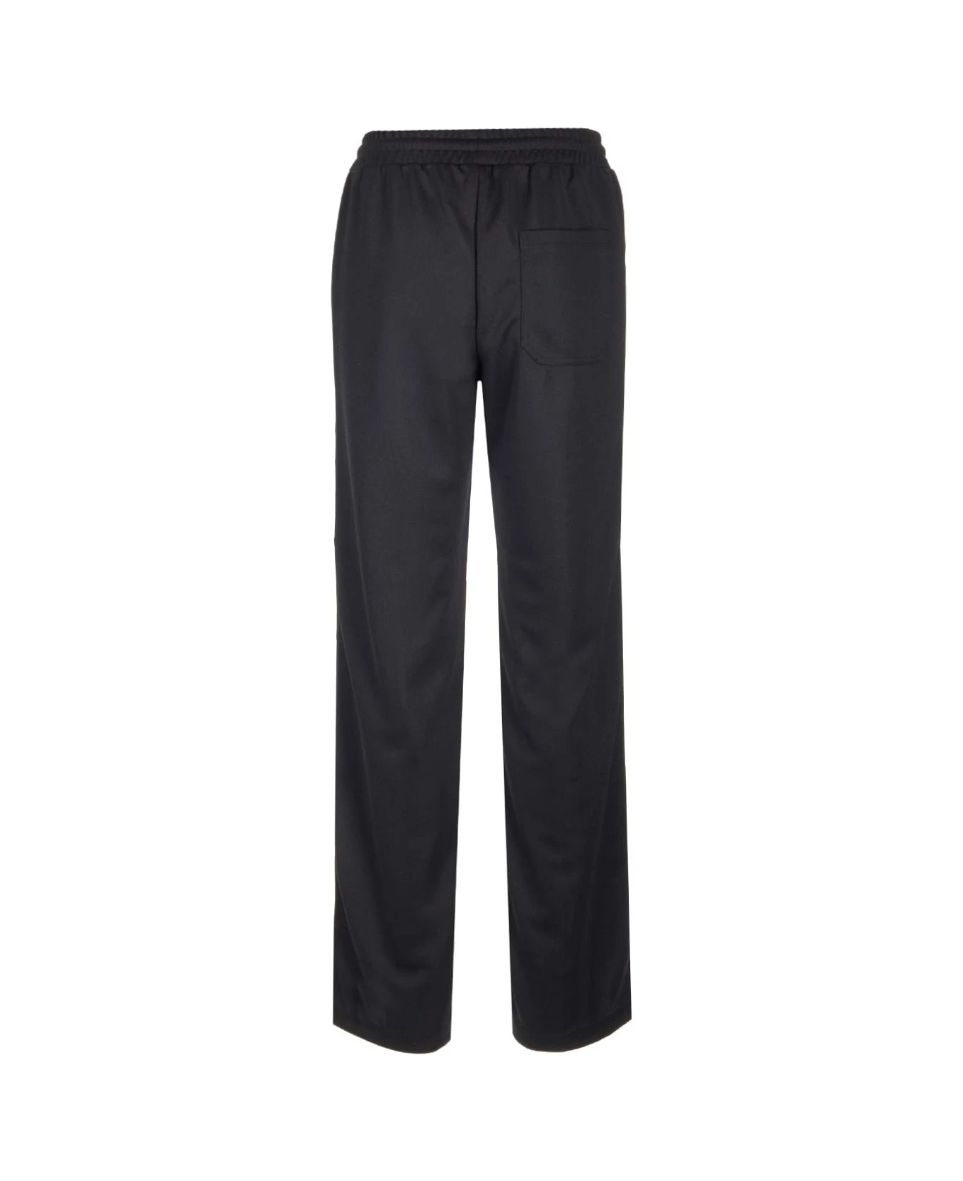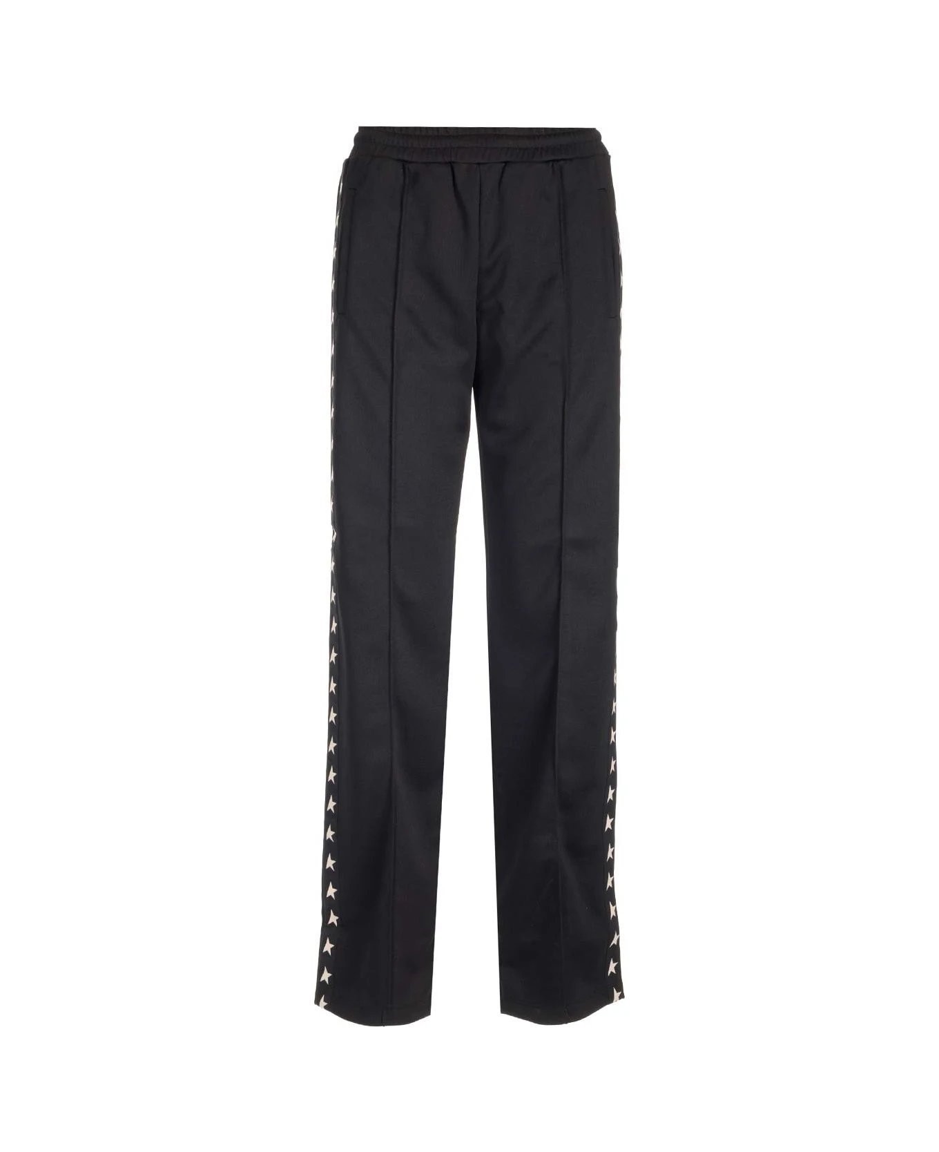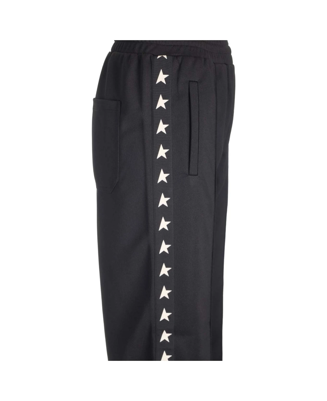 Golden Goose black triacetate jogger trousers with white stars side band and elastic waistband.