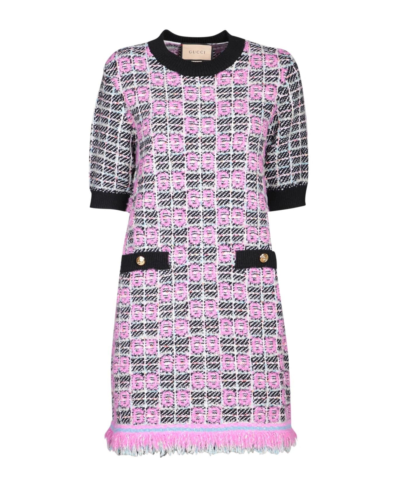 Roundneck. Short sleeves. Double G button details. GG inlay. Two pockets to the front. Ribbed details. Frayed hem. Gold-tone hardware. Color: black/ pink