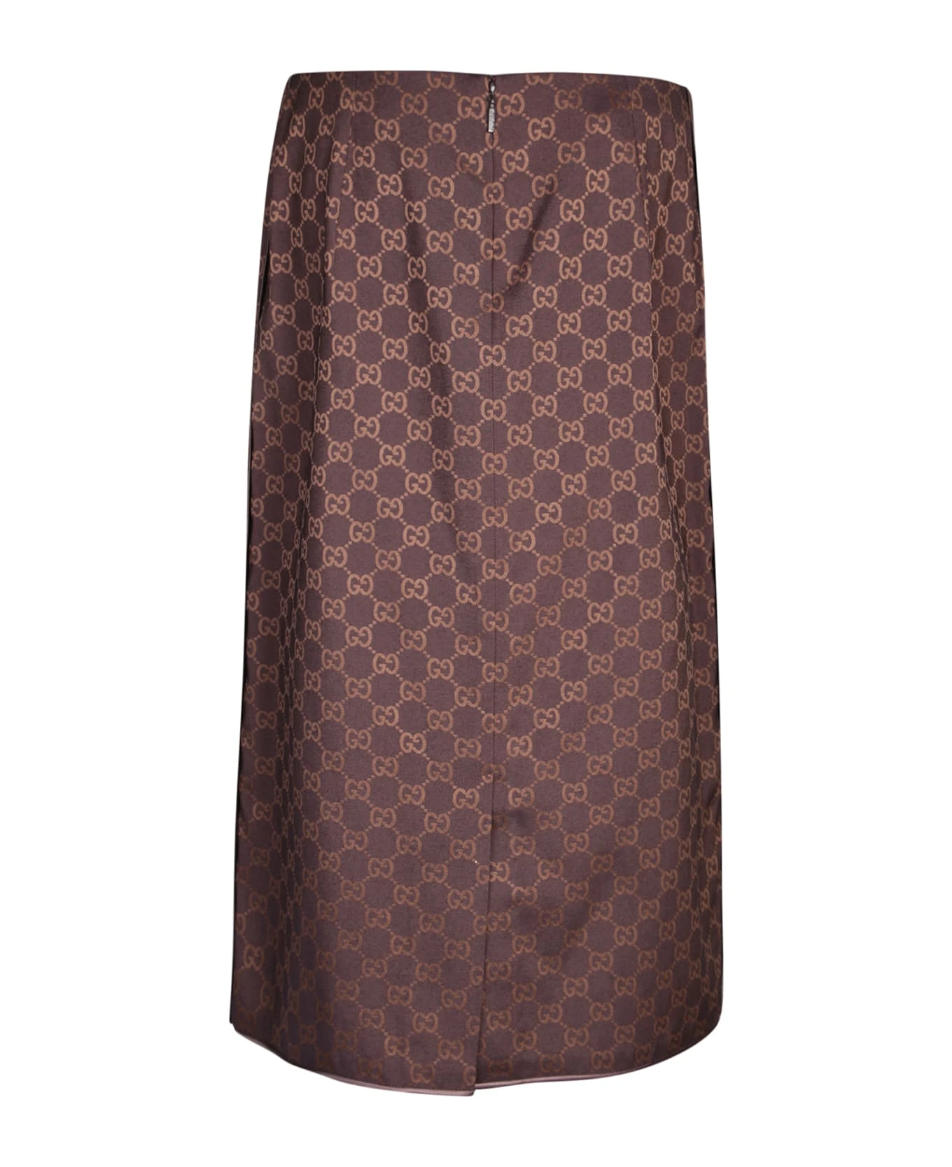 Low-rise. Rear zip fastening. All-over GG motif. Rear slit. Side ribbon. Medium length. Straight hem. Color: brown