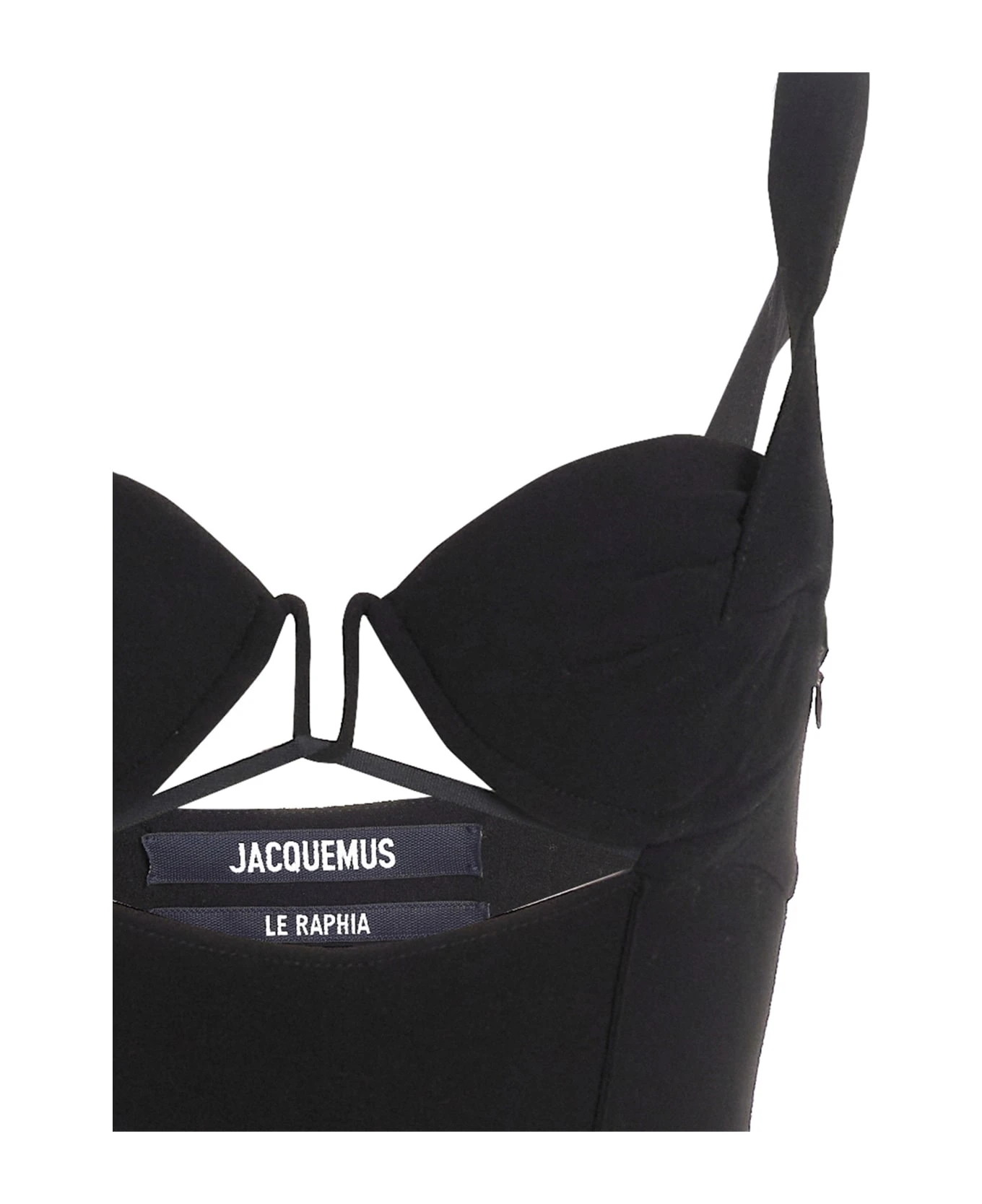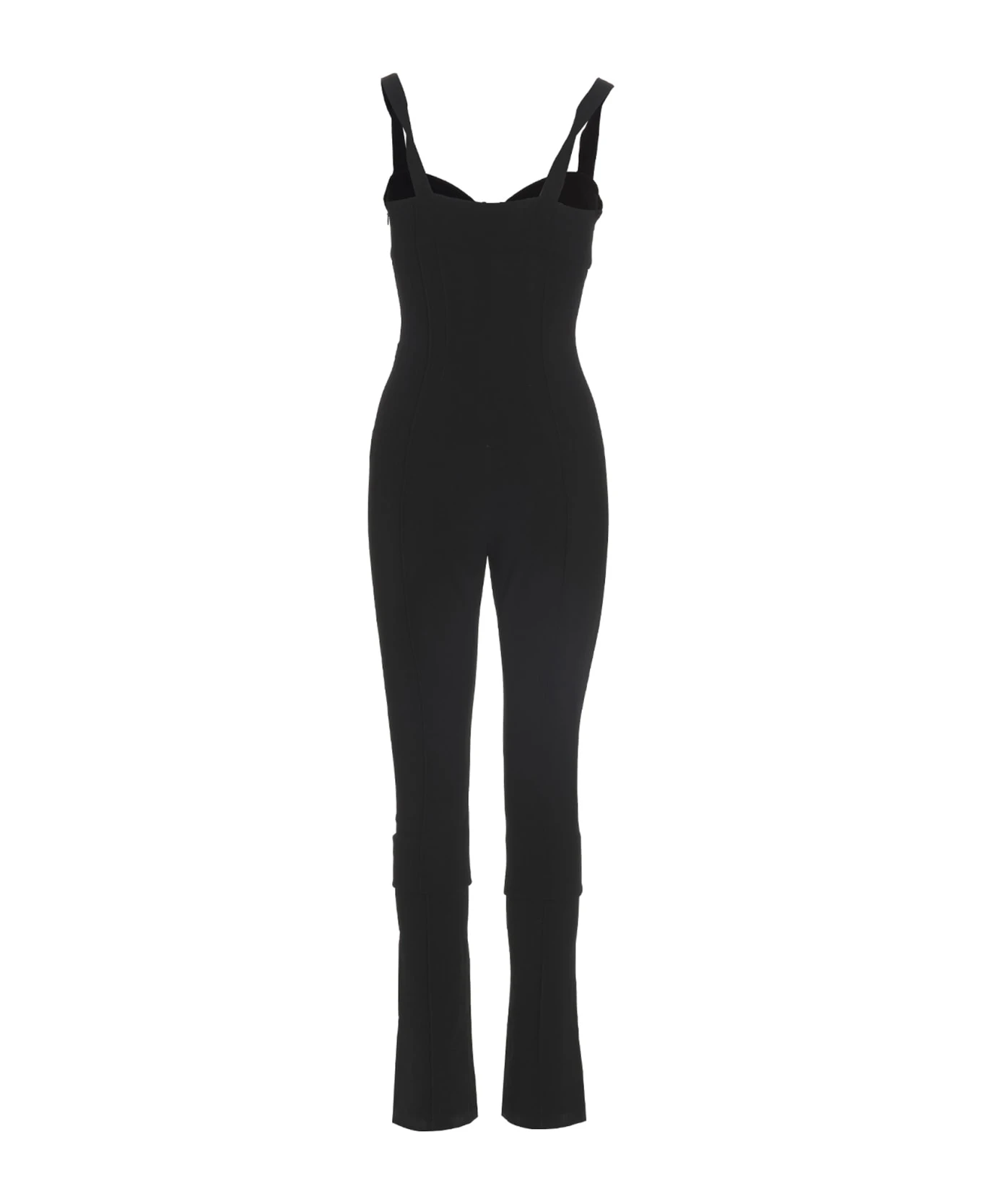La combinaison Bikini’ wool blend one-piece bodysuit with off-the-shoulder straps, integrated brace bra, splits on the lower leg and a side zip closure.