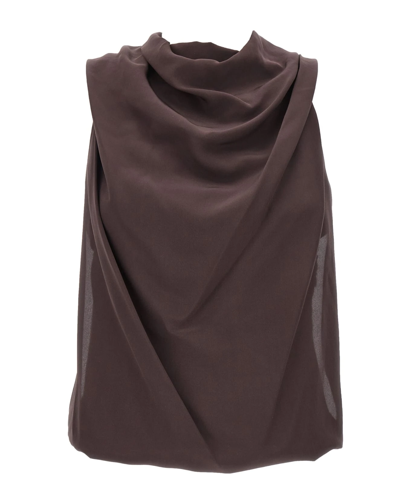 Sleeveless silk top with soft neckline, jewel detail and crossover at the back.