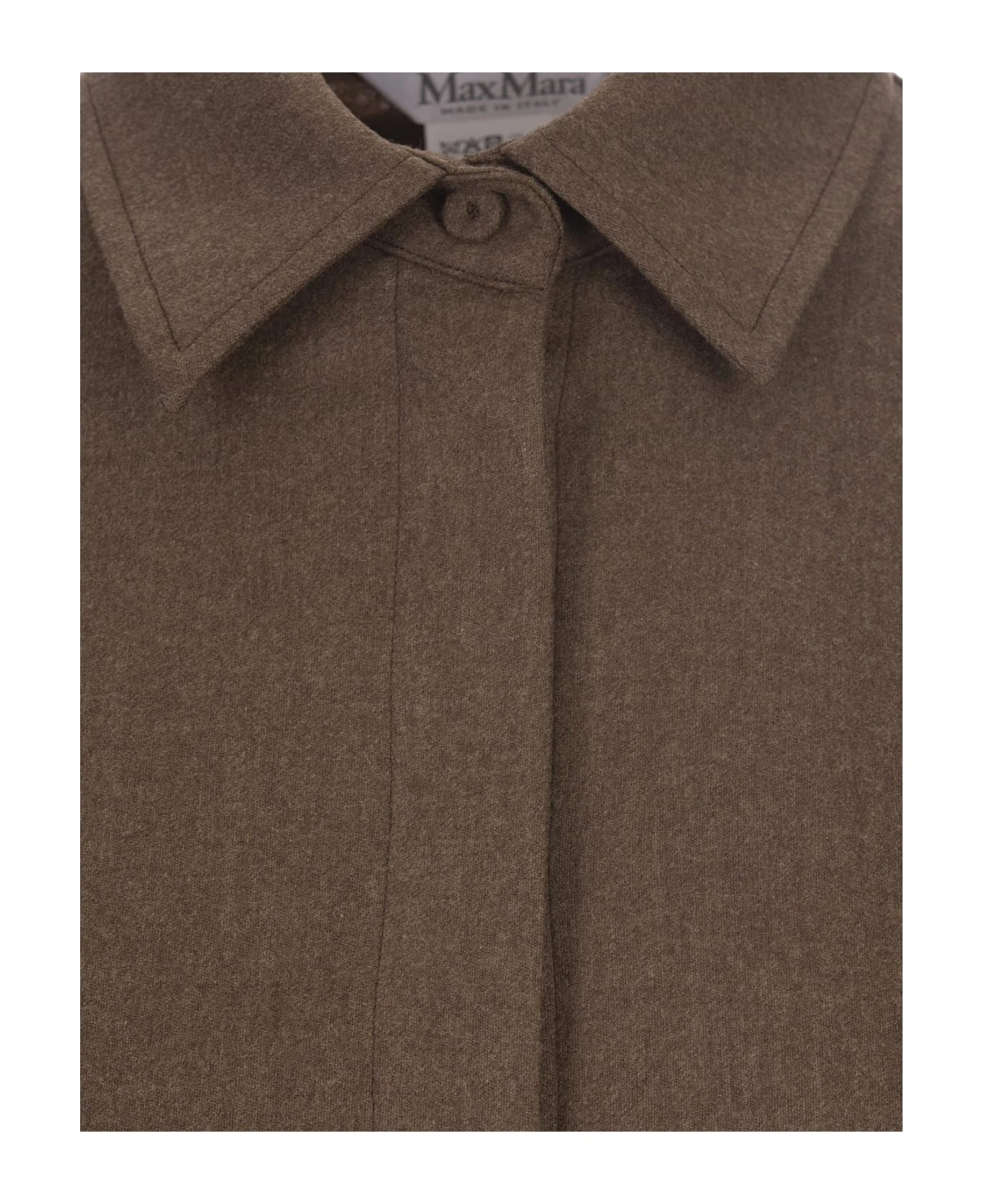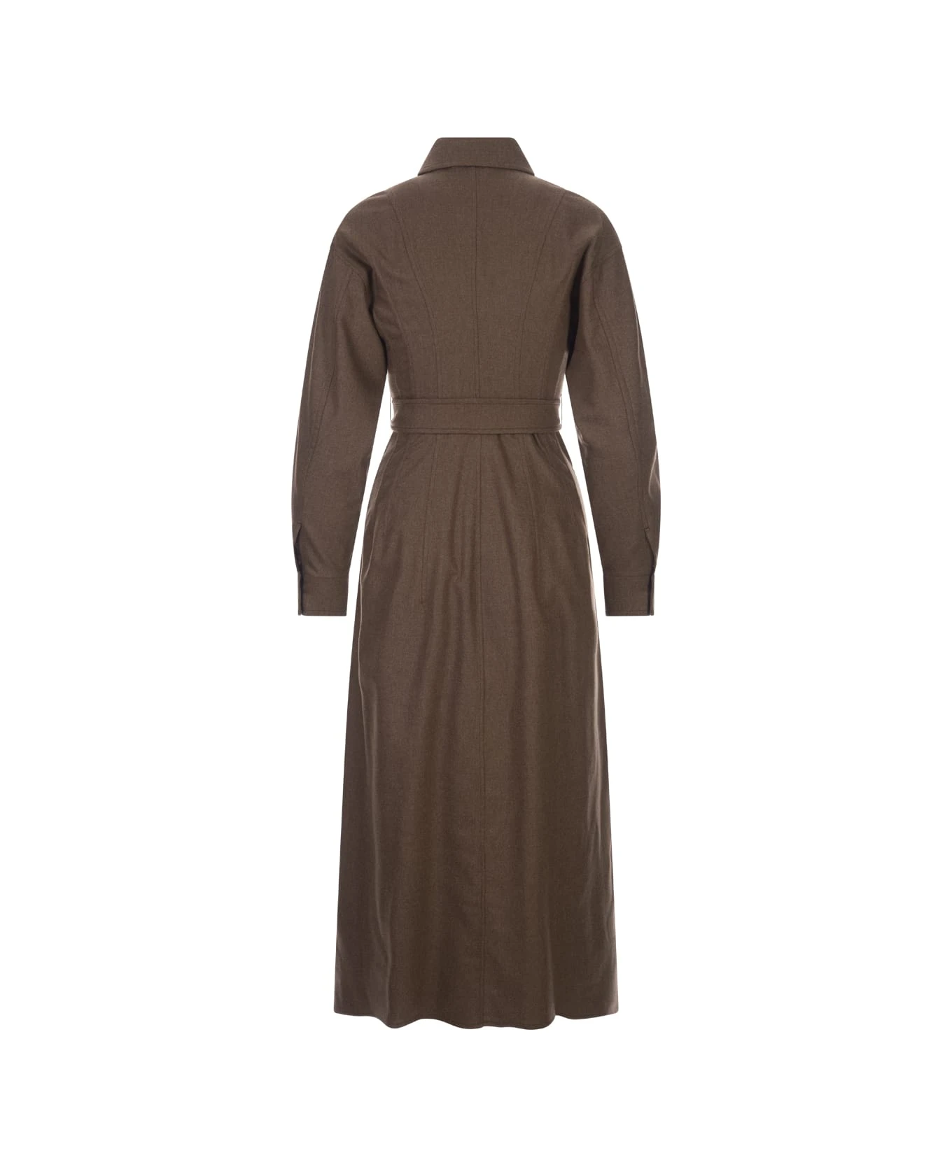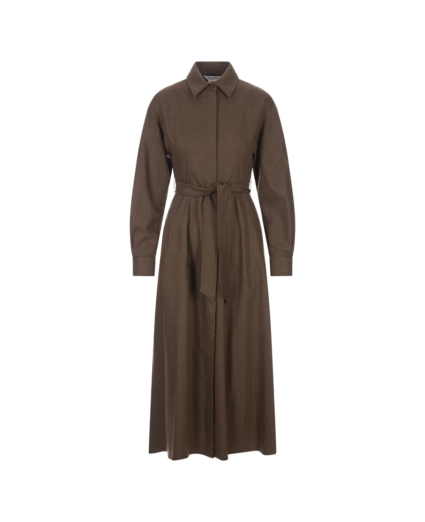 Comfortable and elegant, brown Edro chemisier dress by Max Mara is crafted from a soft, slightly stretchy wool and cashmere fabric. It features a classic collar, long sleeves, button cuffs and a covered front fastening. The midi silhouette is finished with a tone-on-tone belt that accentuates the waist.