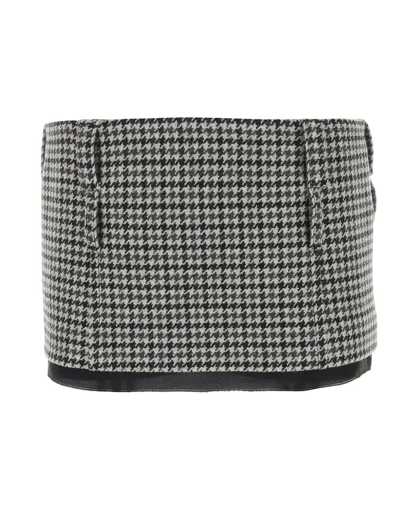 Mini skirt realized in pure virgin wool characterized by houndstooth embroidery on the entire surface enriched by logoed patch at the back.