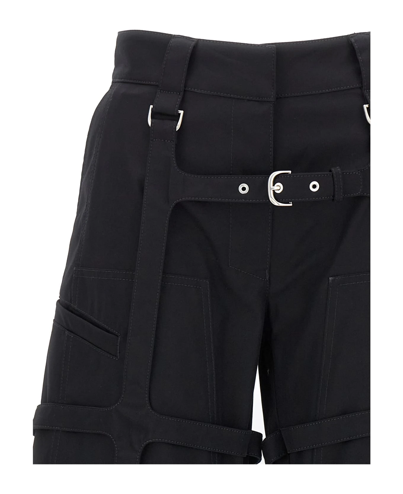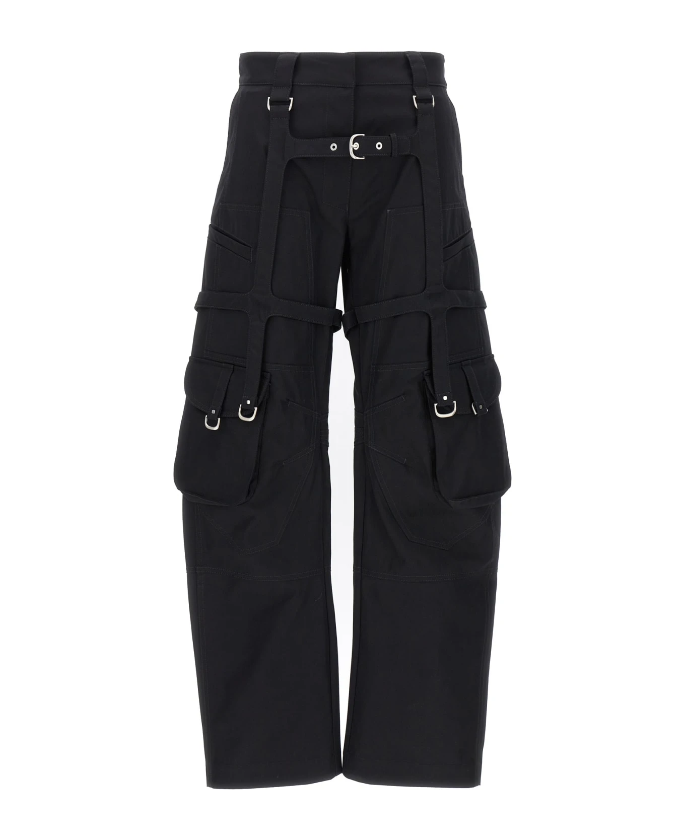 ‘Co Cargo’ cotton pants with hook, zip and button closure, strap detail, pockets.
