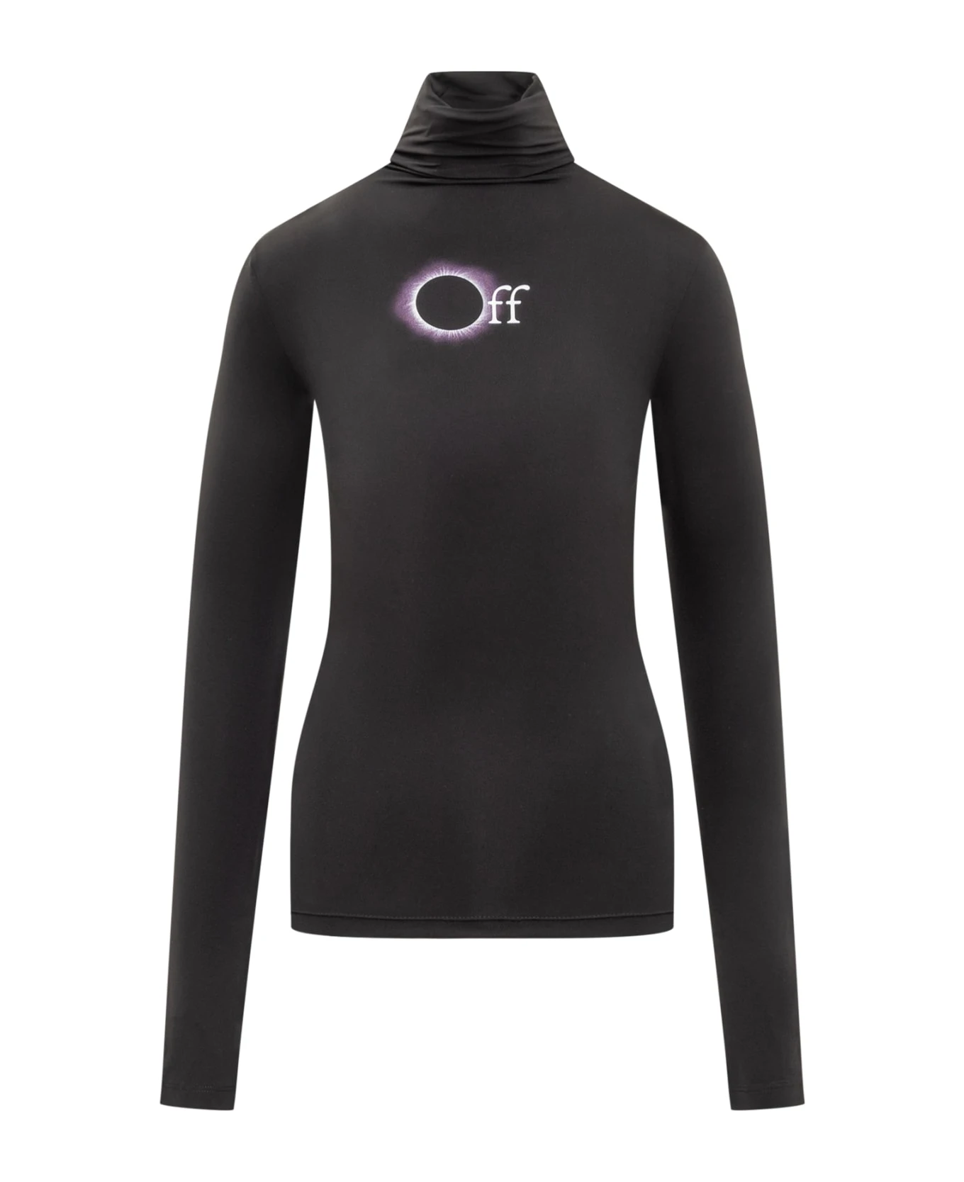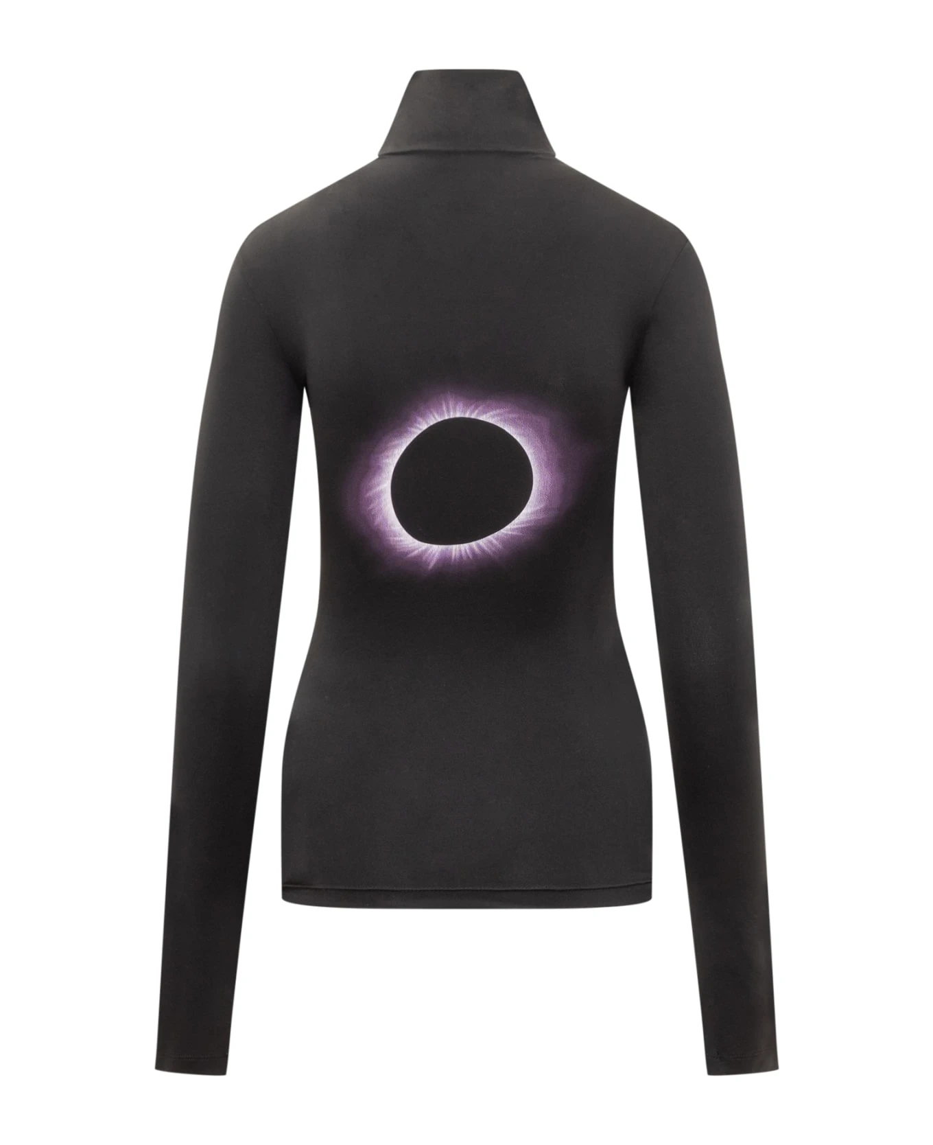 Black long sleeve t-shirt. High neck. Logo printed on the front. Print on the back. Slim fit.