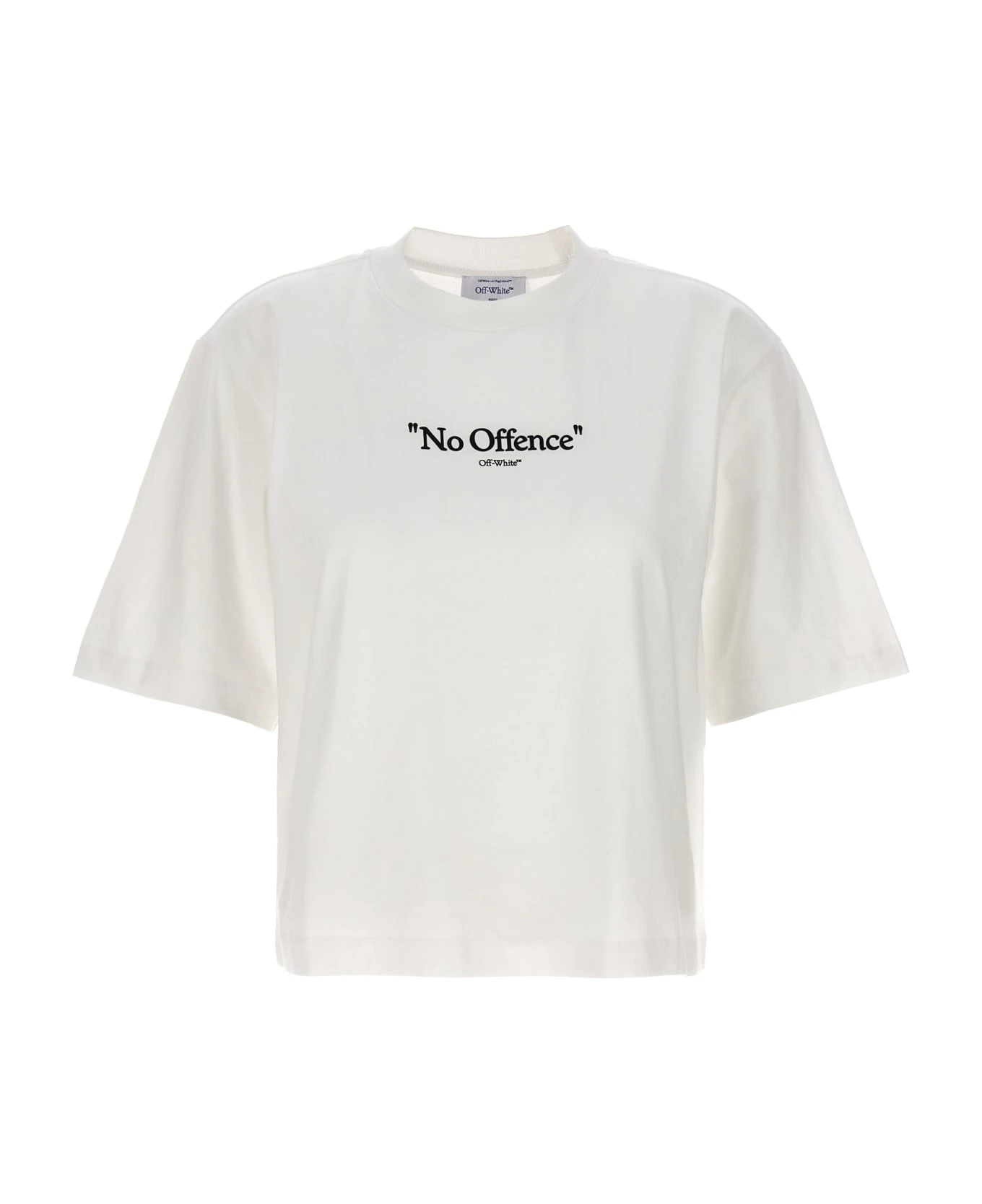 ‘No Offence’ cotton crew neck T-shirt with front print, short sleeves.