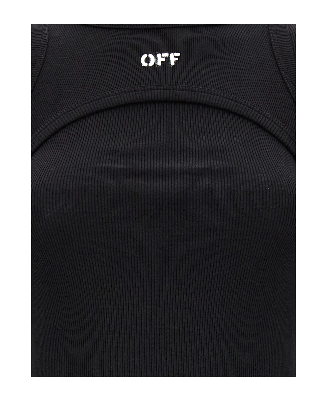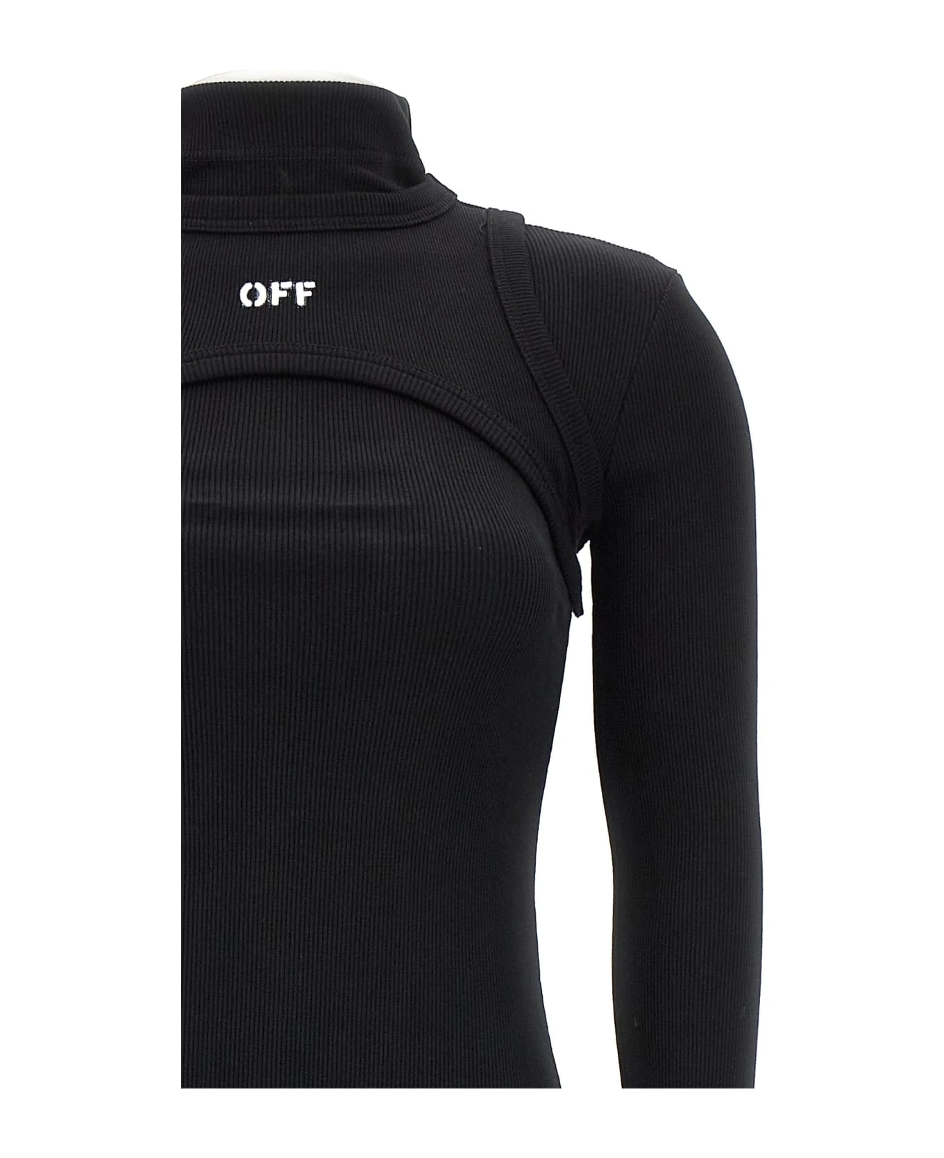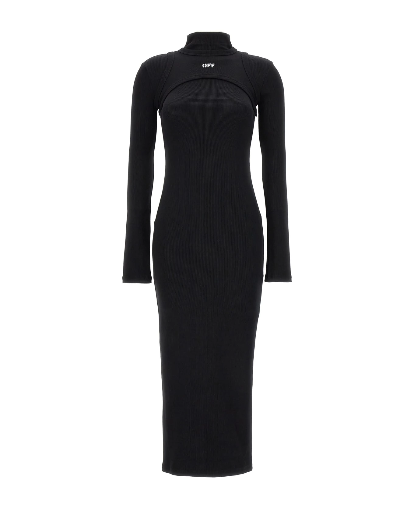 Off Stamp’ ribbed cotton dress with front logo print, a high neck and long sleeves.