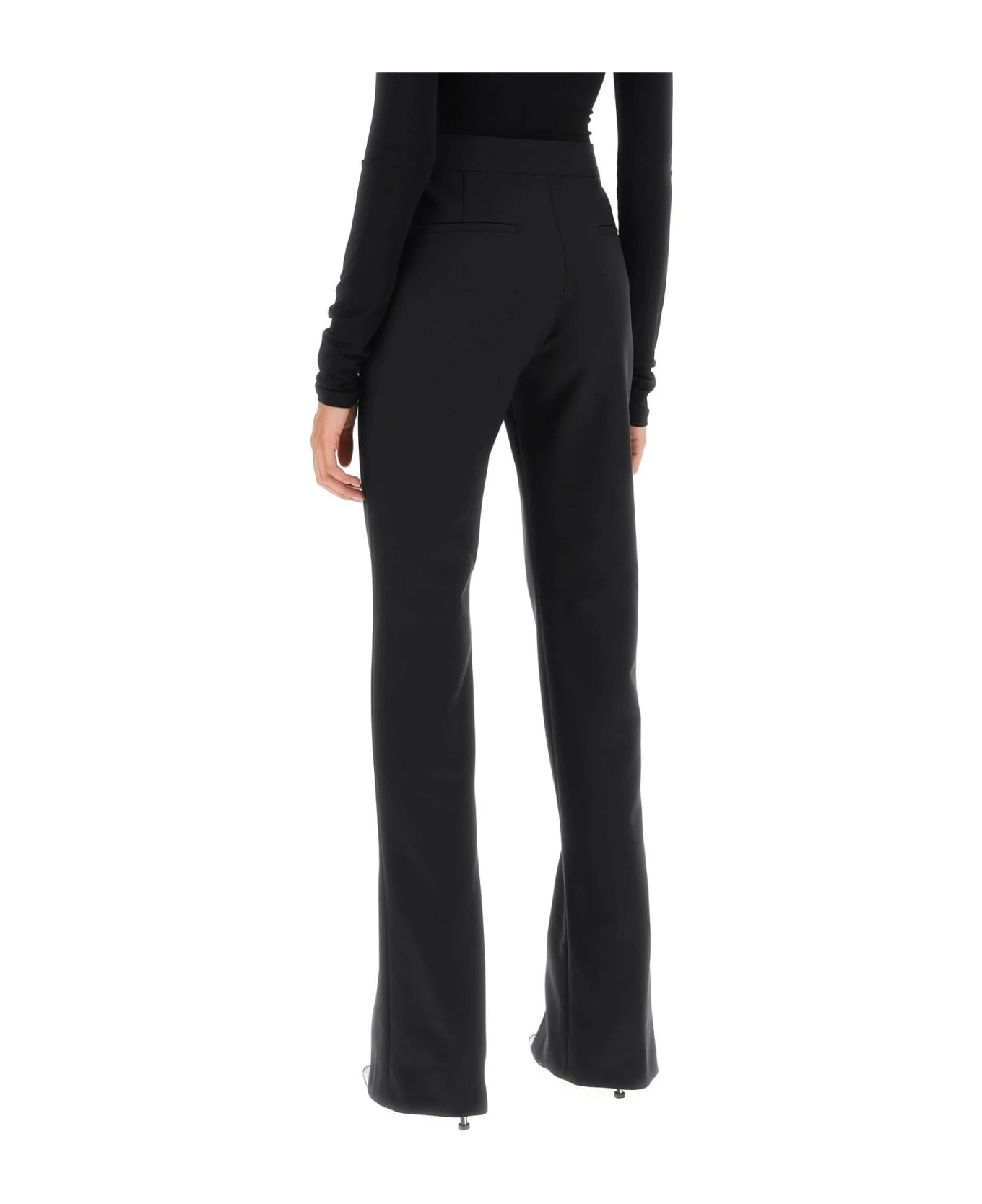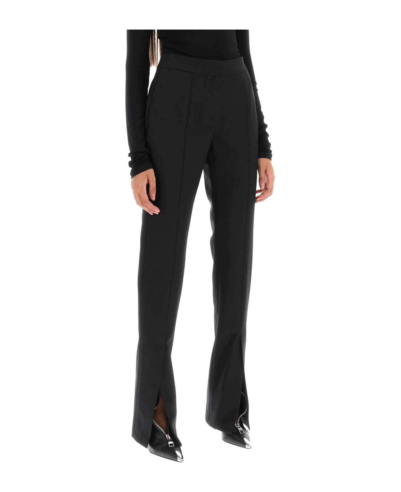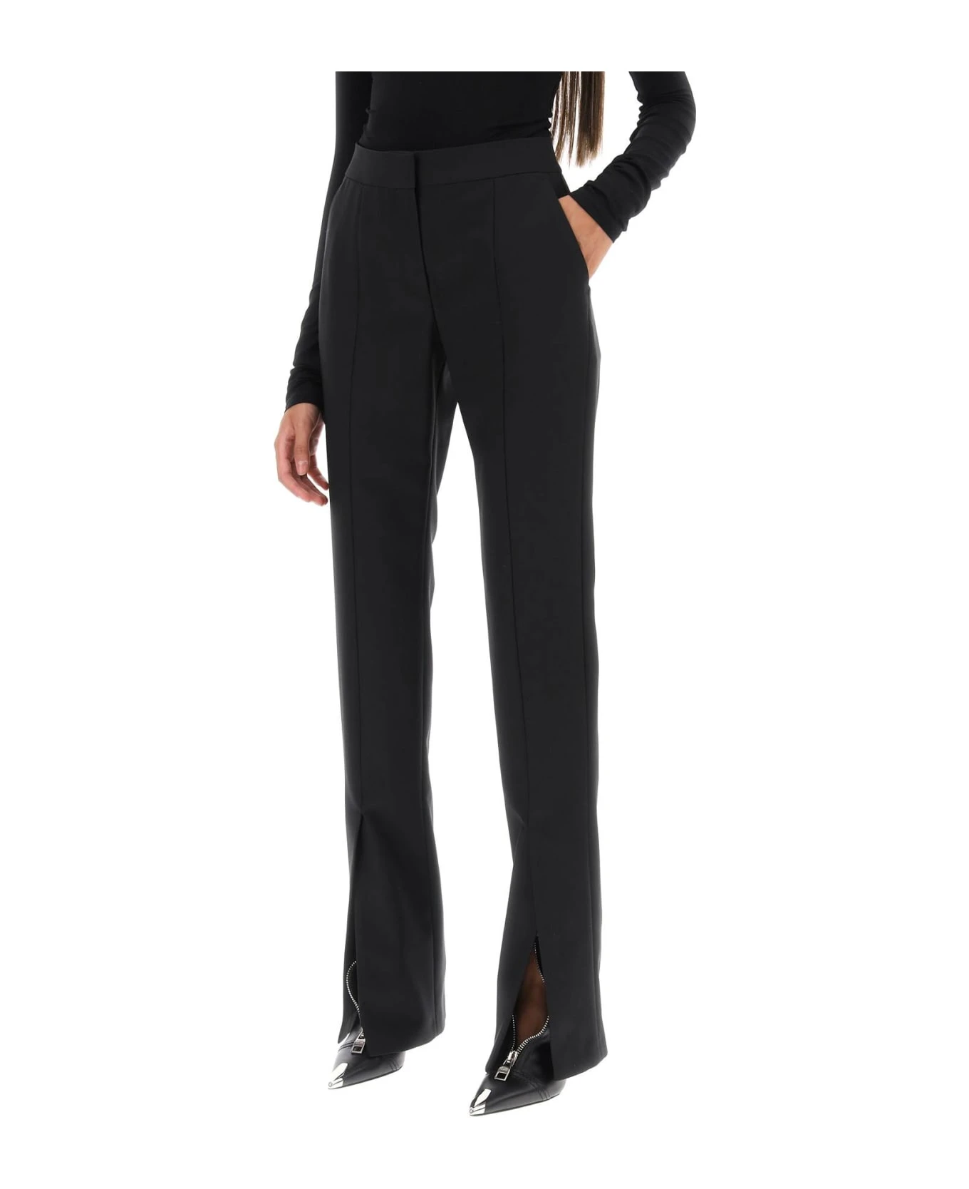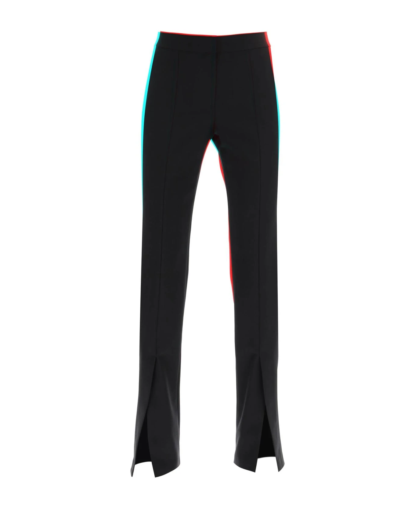 Off-White tech drill pants cut to a slim fit with straight leg. Designed with a split hem at the front, they features side slash pockets, back welt pockets and a front zip fly with concealed hooks. The model is 177 cm tall and wears a size IT 40.