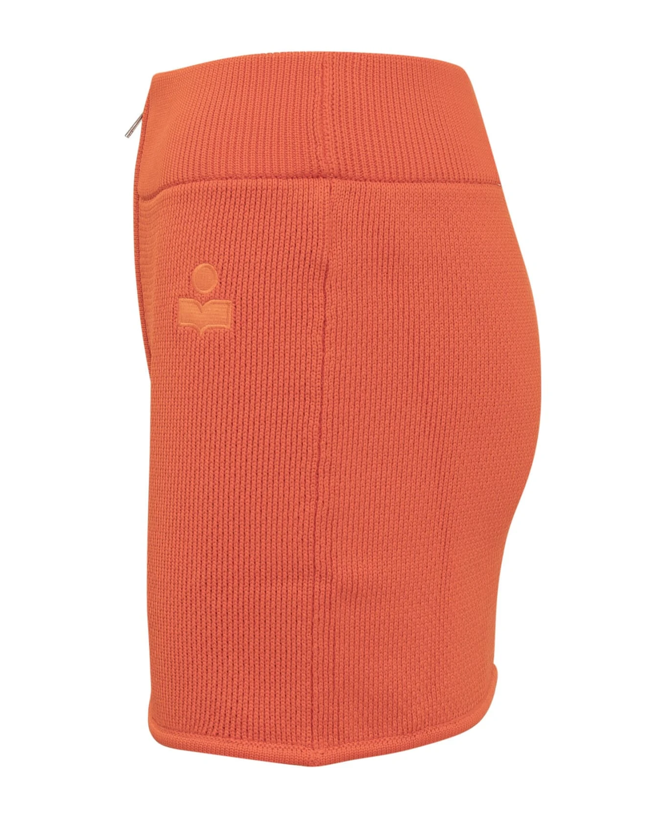 Orange mini skirt. Zip closure on the front. Embroidered logo on the front.