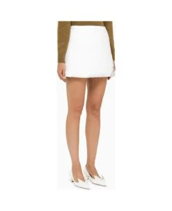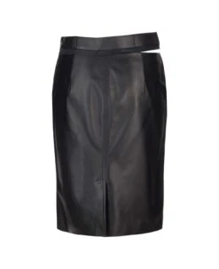 Black mini skirt. Zip back closure. Drapery applied.