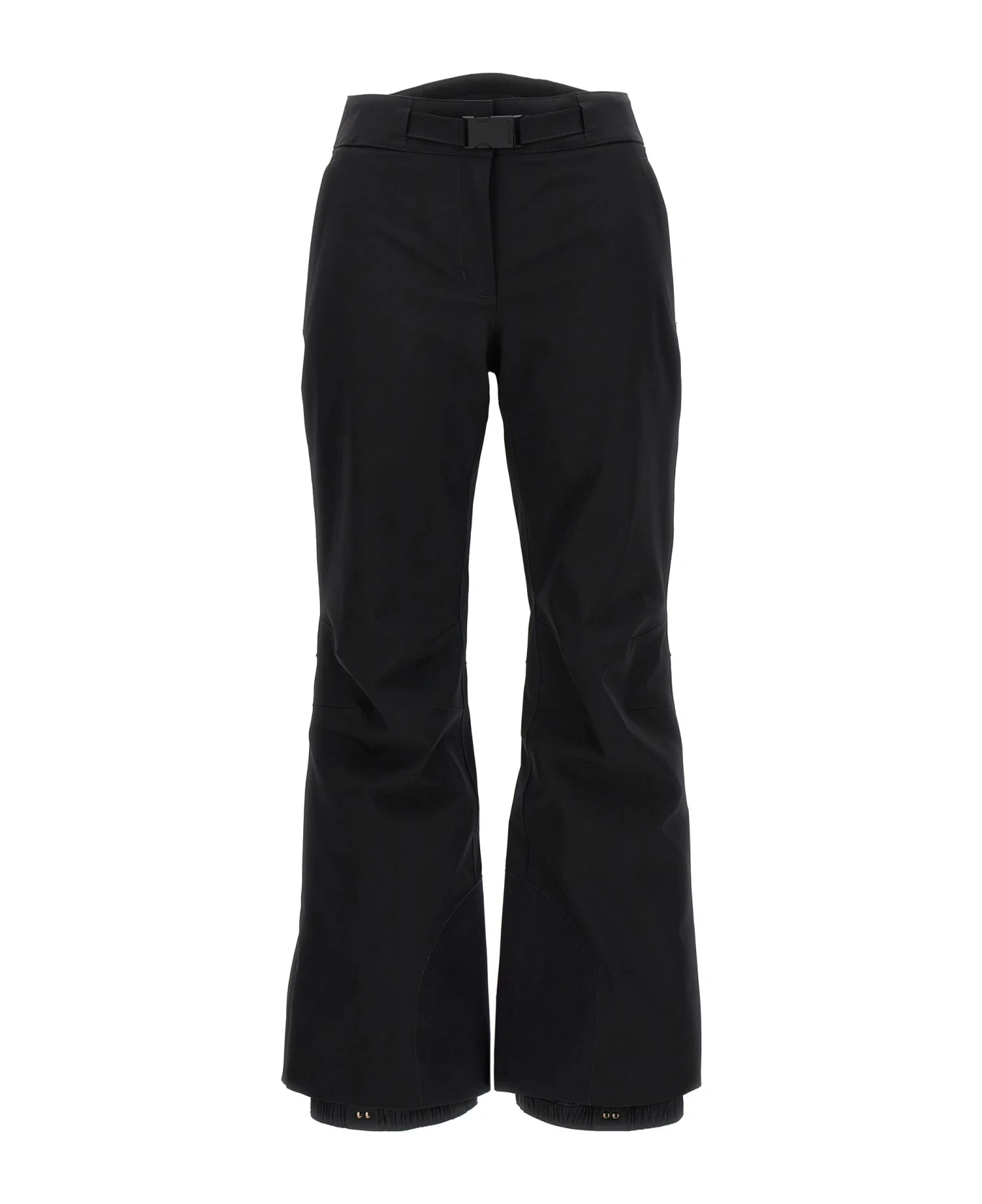 4 way stretch 2 layer technical nylon ski pants, moisture-wicking stretch lining, waist and knees with thermal lining, PrimaLoft Gold Insulation Active thermal padding, heat-taped seams, AquaGuard by YKK front zip closure, Highly Water Repellent Zippers, AquaGuard by YKK zip pockets, boot hook.
