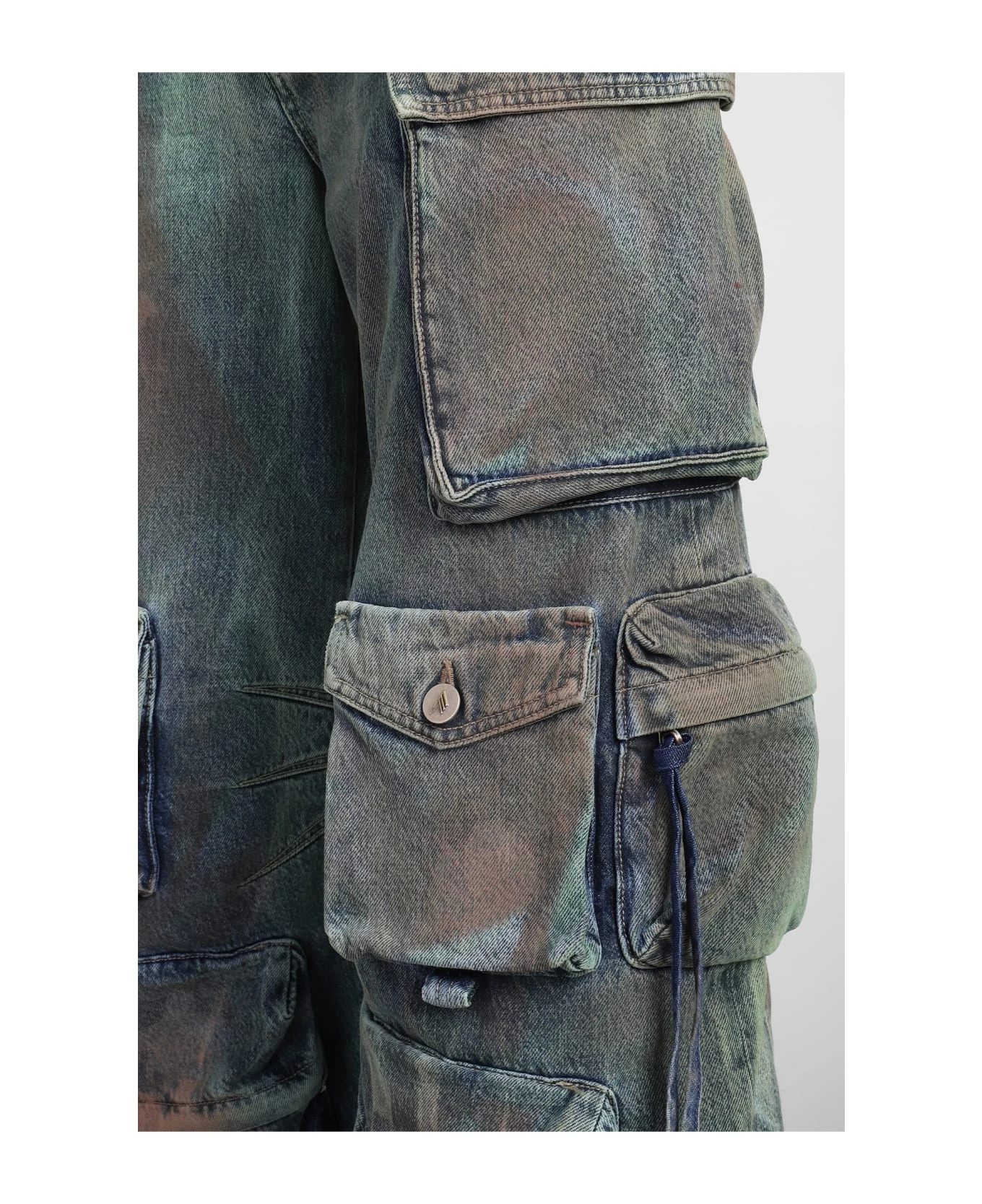 Suit in camouflage denim, strapless, cargo pockets, camouflage print, frontal buttoning, oversized fit, 100% cotton, Made in Italy, model is 180 cm and wears size 27