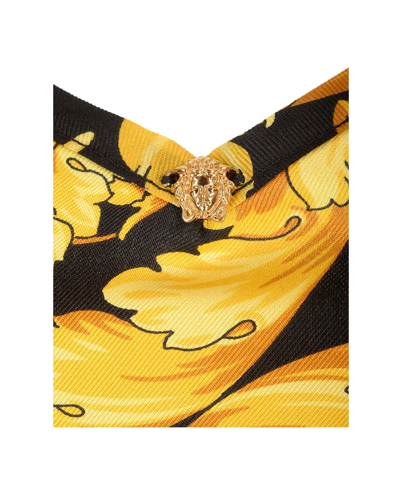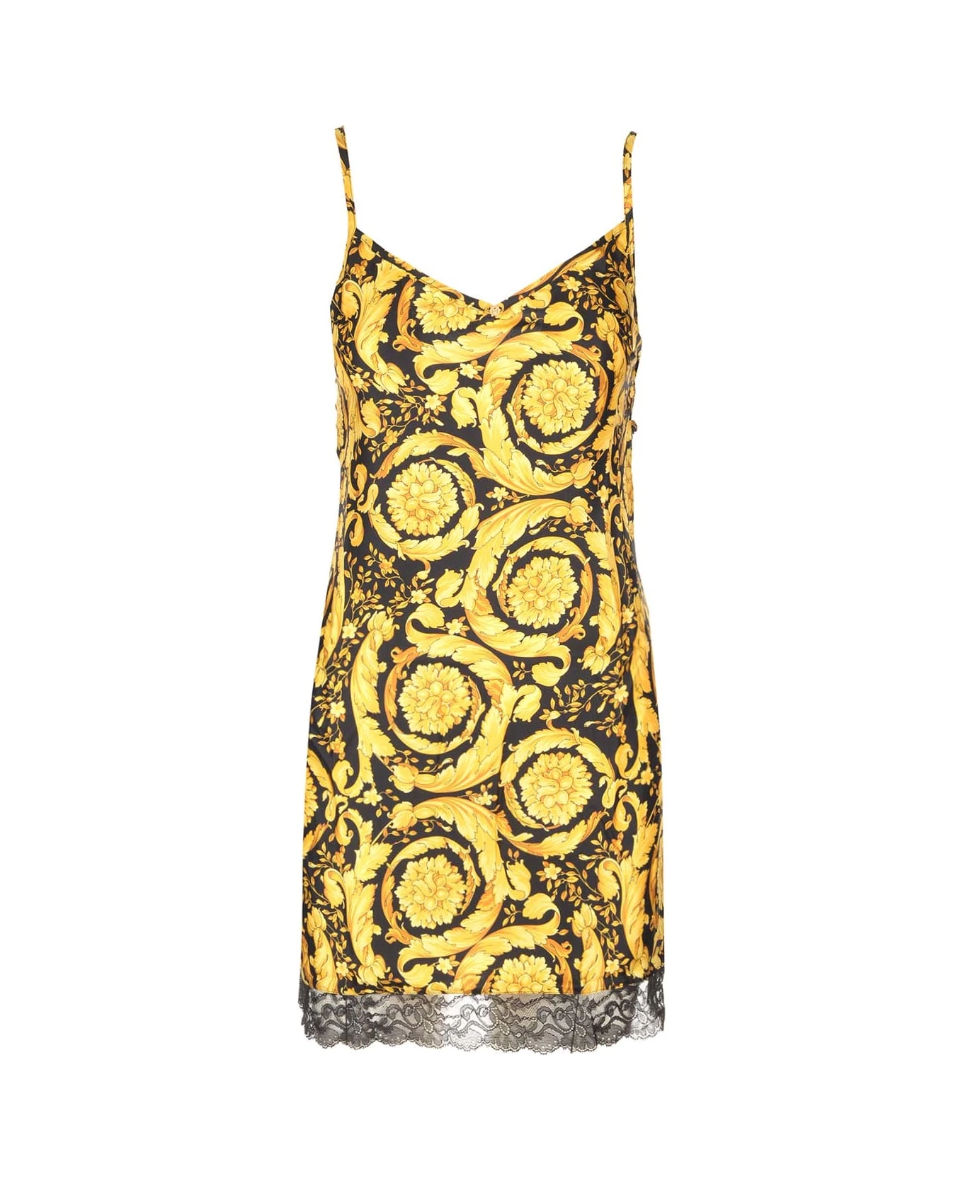 Barocco print silk twill mini dress by Versace with adjustable shoulder straps and lace detail hem.